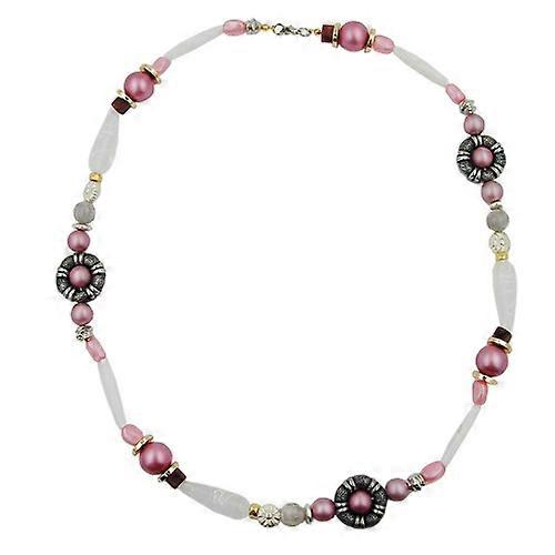 Kette altsilberfarbene Ringperle rosa-weiß-altsilber-gold Kunststoff 60cm