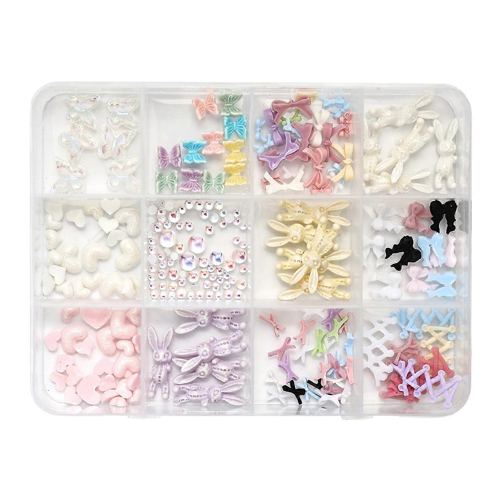 1Box Resin Nail Art Decorations,Bows Butterfly Heart Nail Art Charms Nail Rhinestones for Acrylic Nails Art Designs Multicolor