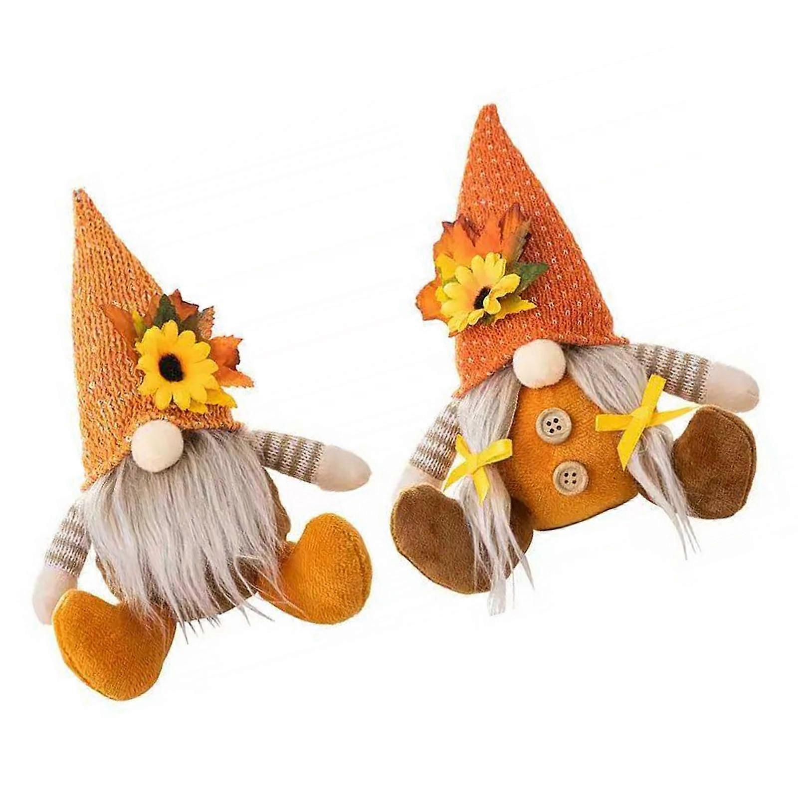 1Pair Fall Season Harvest Celebration Gnomes Figures Handmade Festival Dwarf Decoration for Office and Home Couple Gift Multicolor