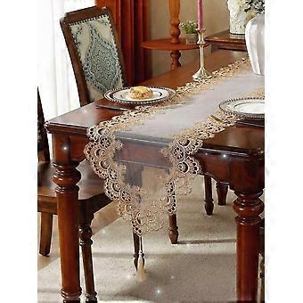 1 Piece of Mesh Lace Embroidered Mesh Table Runner, French Simple Polyester Fiber Table Runner with Pendant, Suitable for Dining Table Coffe