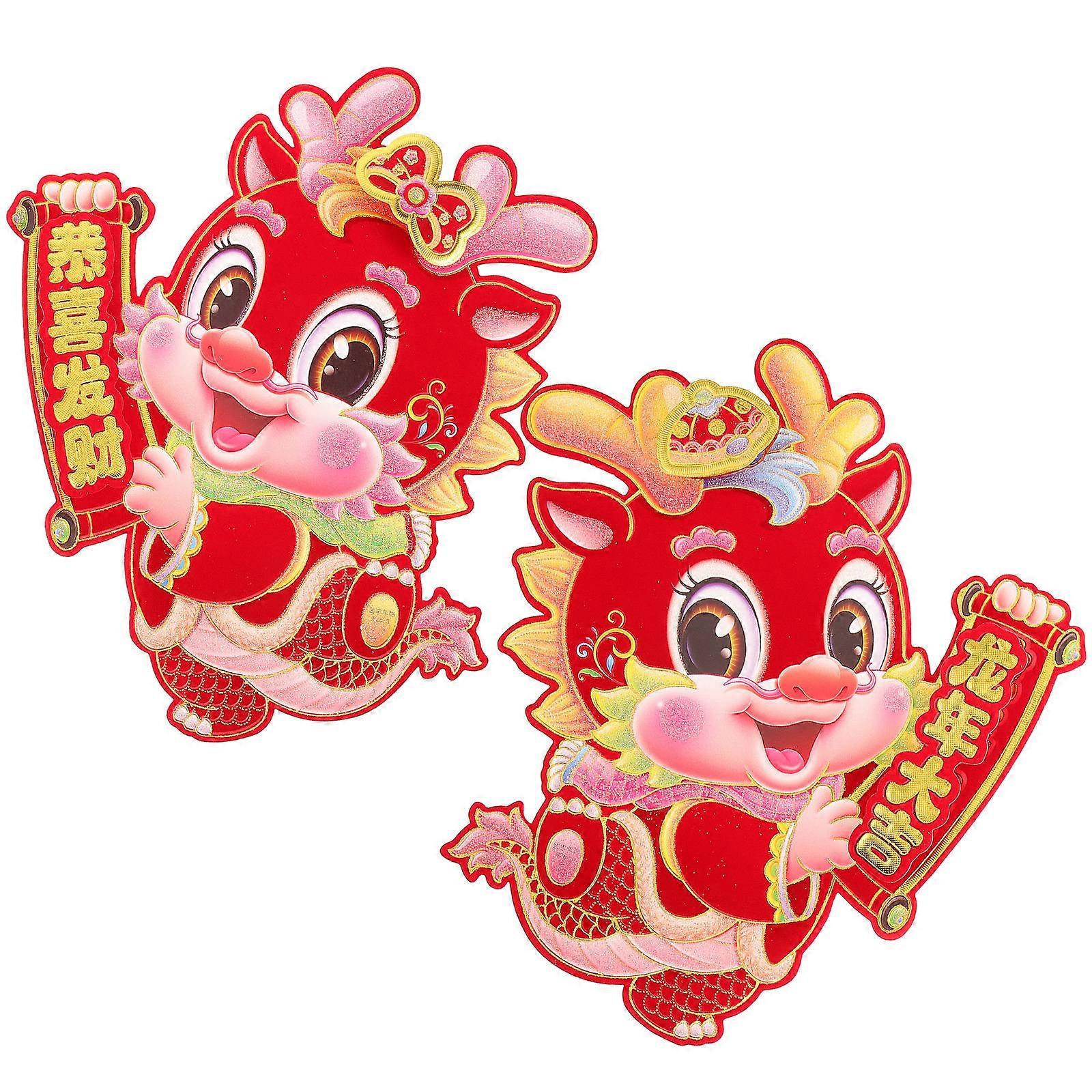 10 Pcs New Year Dragon Door Decals Removable Adhesive Wall Stickers Festive Atmosphere Chinese Culture Decor