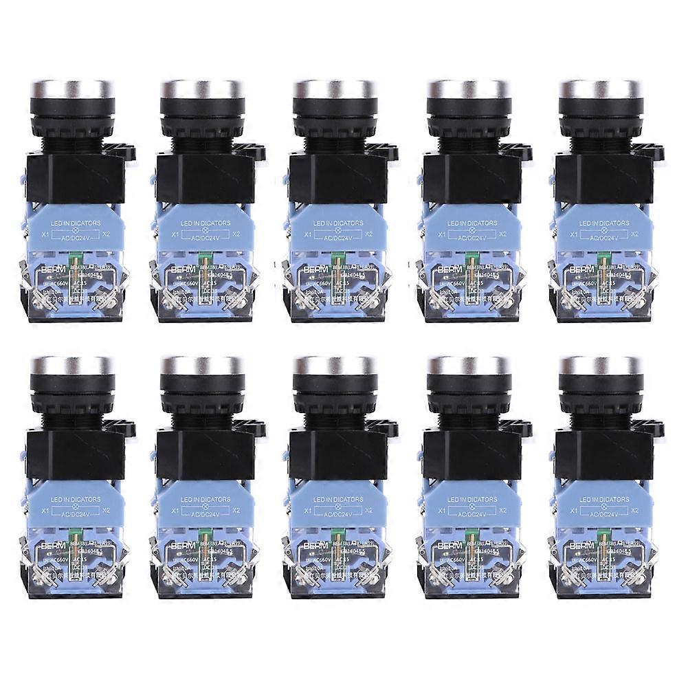10 Pcs BEM38-11DS Self Lock Flat Head Button Switch AC/DC24V 1 On 1 Off Switch(Blue Light)