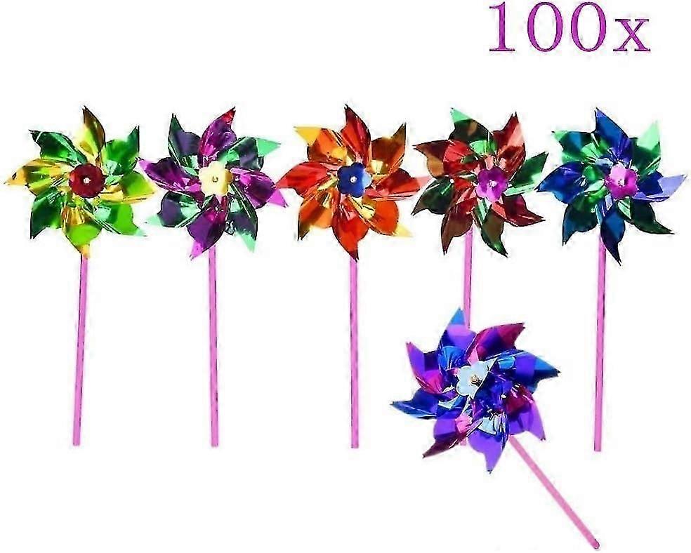 100 Waterproof Foil Windmills Outdoor Toys for Kids Garden Decoration Ornament Pinwheel Spinners for