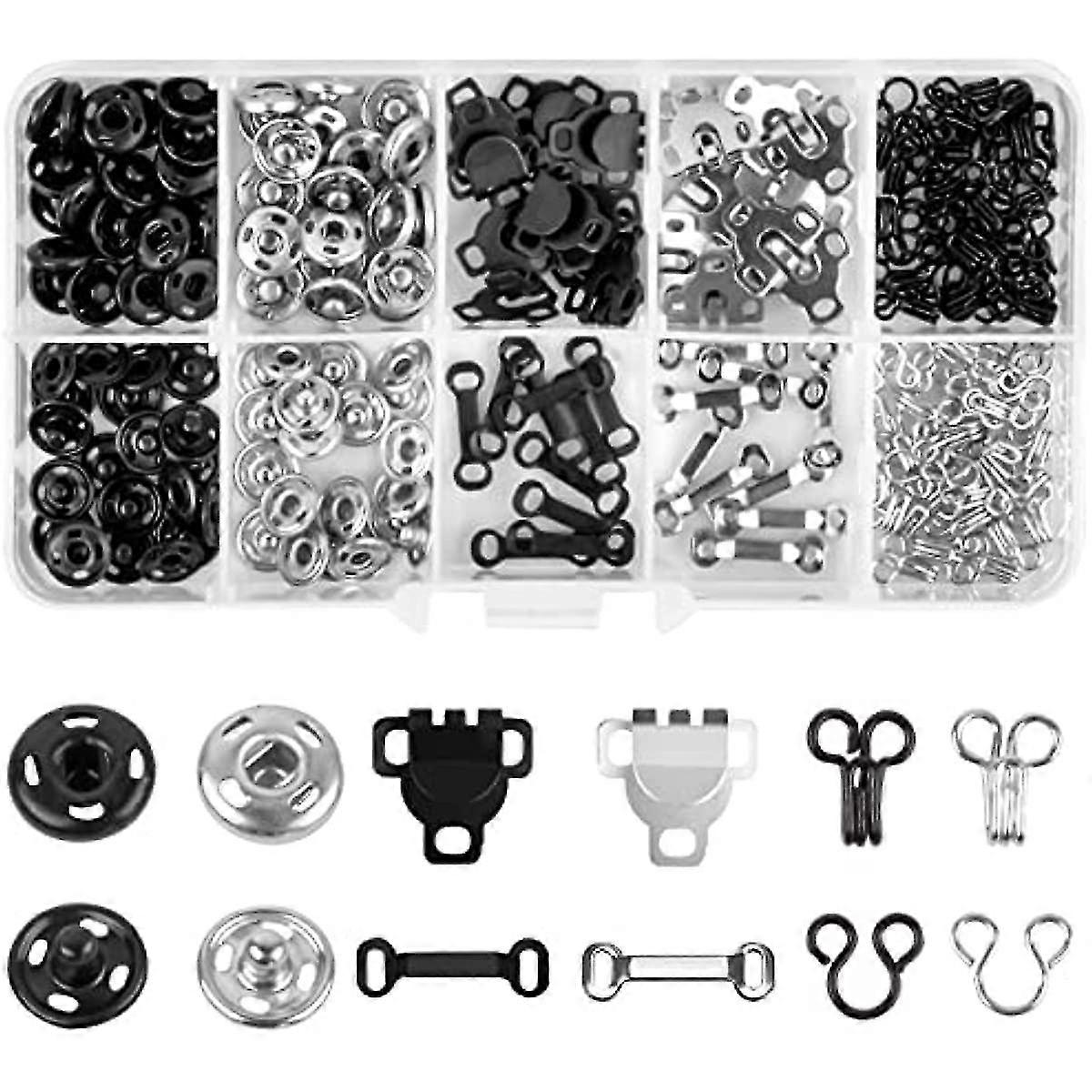 100 Pcs Sewing Hooks And Eyes Set, Hook And Eye Fastenings For Clothes Press Studs Snap Fasteners Sew On Press Stud Cap Buttons For Skirt Bra Trousers
