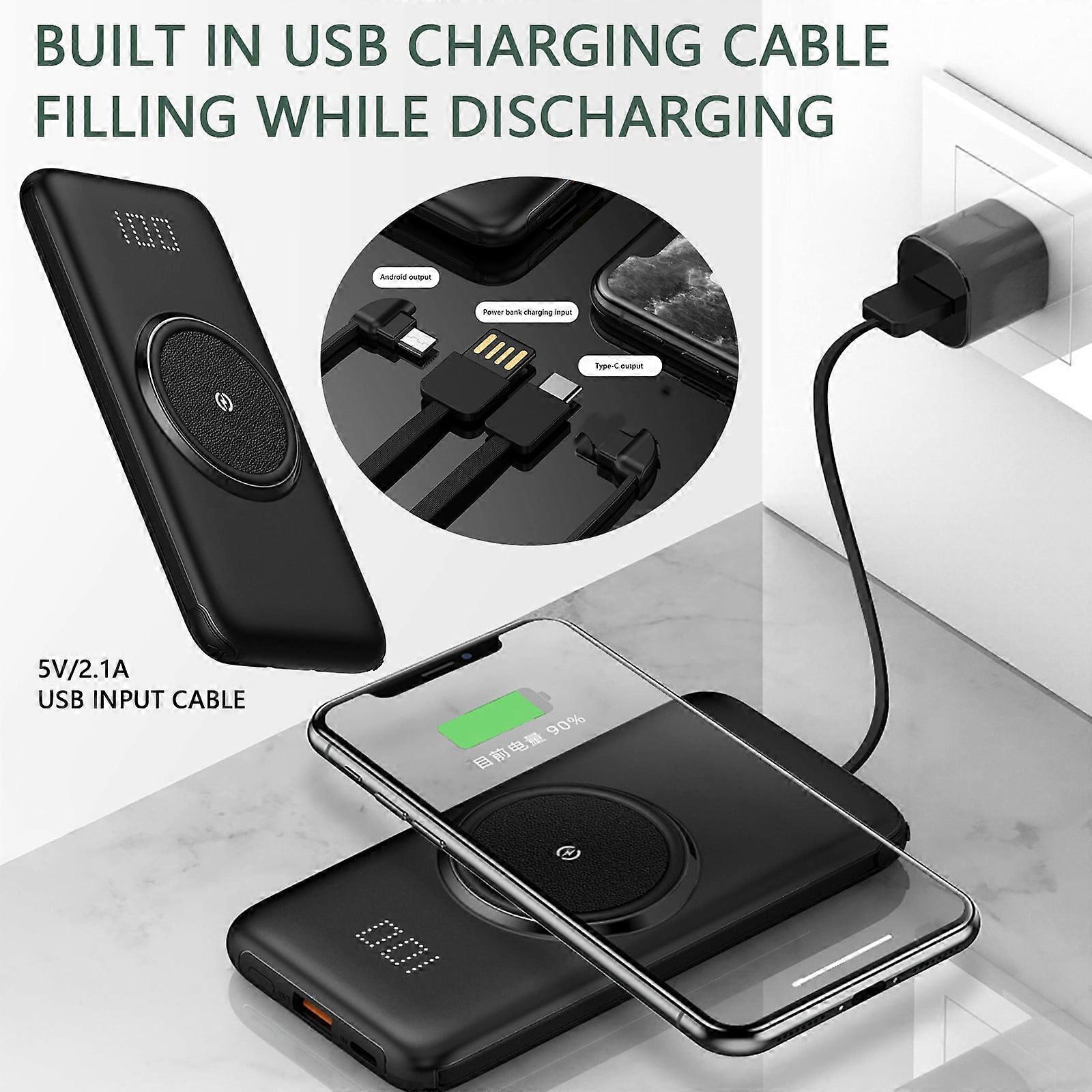 10000mAh Large Capacity Built-in Cord Wireless Charging Power Bank for 12, Mobile Power Bank