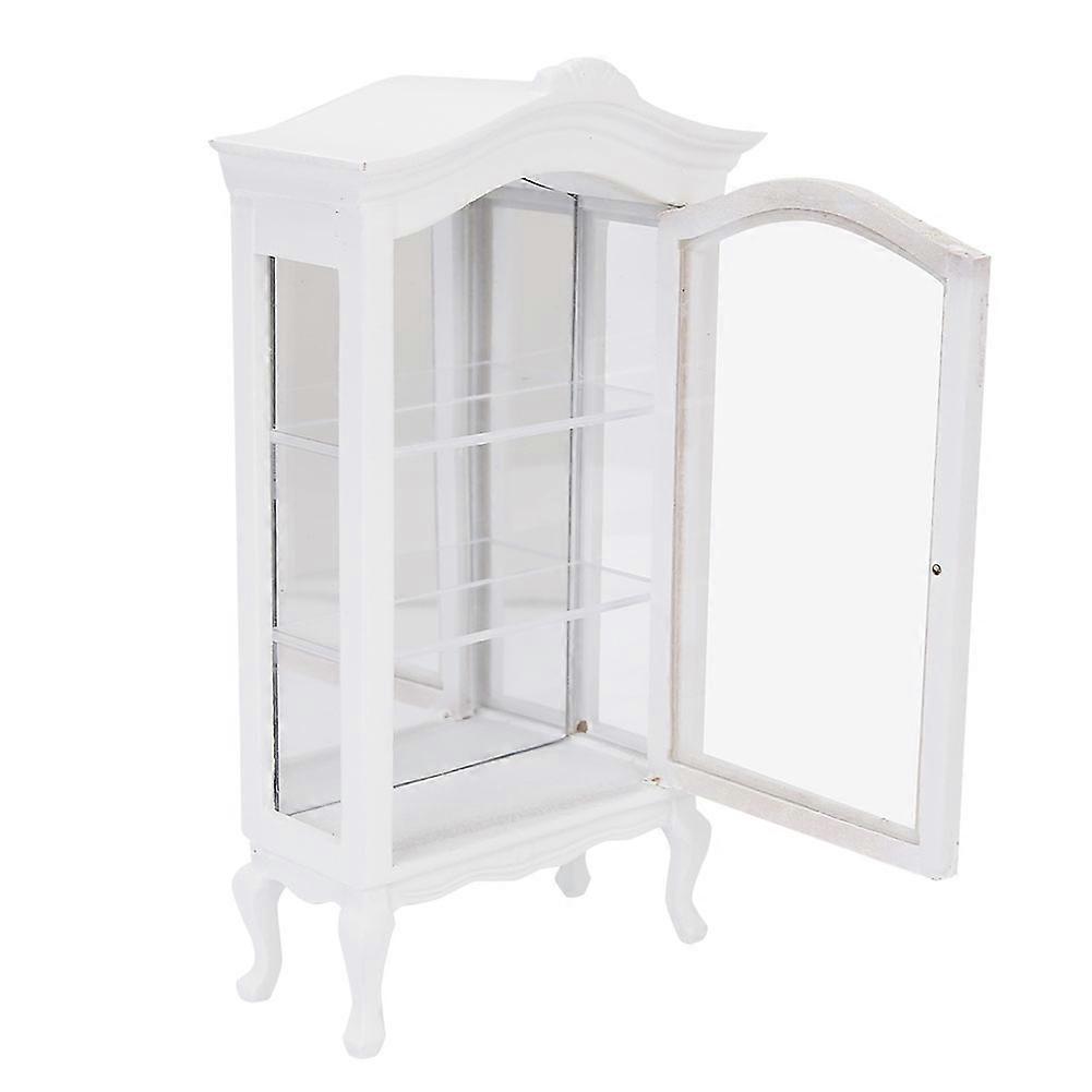 1:12 Doll House Mini White Wooden Three Layers Transparent Window Display Cabinet for Dolls