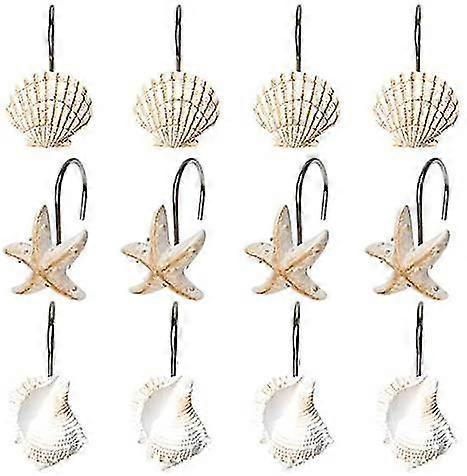 12 Pcs Decorative Seashell Shower Curtain Hooks Bathroom Beach Shell