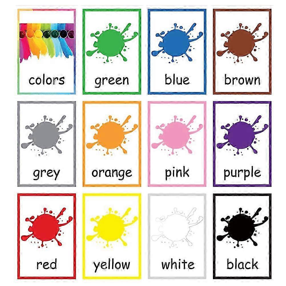 12 Sheets Waterproof Cognitive Flash Cards for Kids Featuring Color Words and English Letters - Memory Training Learning Cards in 12 Differe