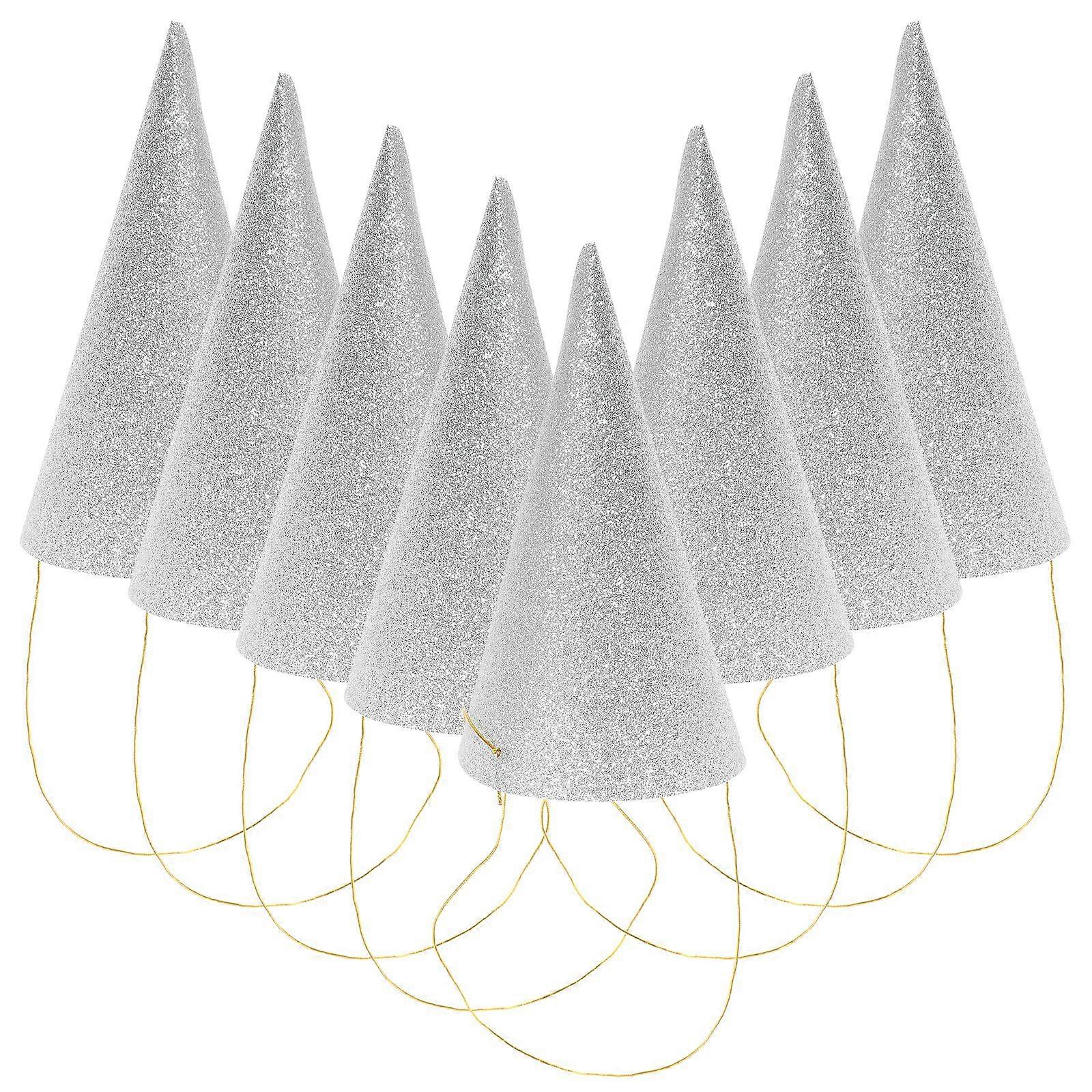 12PCS Glitter Cone Party Hats Triangle Birthday Hats for Kids and Adults Party Decorations (Silver)