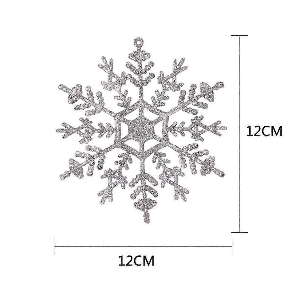 12Pcs Xmas Tree Snowflake Pendants Glitter Powder Snowflake Hollow-out Snowflake (Silver)