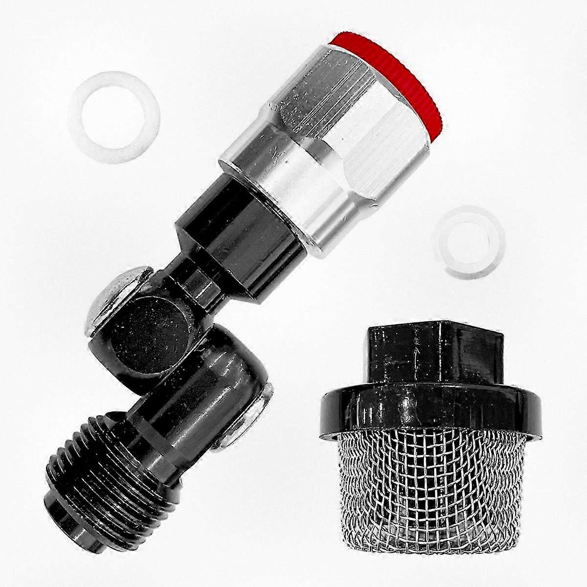 Metal construction with high hardness, wear resistance, and rust prevention. 7/8" thread size, 180�� angle adapter; max working pressure 3600 PSI. Multi-angle swivel joint compatible with most airless paint sprayers. Stainless steel mesh inlet strainer replaces 390, Ultra 395 & 495 models. Attaches to extensions for spraying at all angles, reaching difficult spots. Color: As shown Material: Metal Package includes: 1 x airless sprayer Note: Slight color variations may occur due to lighting or display differences. Measurement tolerance: +/- 1-3cm.