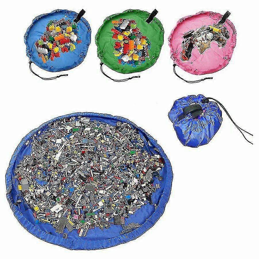 This toy storage bag starts as a huge floor mat that extends out to 150cm (59"), offering plenty of space for your kids to spread out their toys and play. 2 In 1: Toy Storage Bag & Ground Mat. As a floor mat and a toy storage bag, it offers tons of room for small and medium sized toys.Foldable & PortableThe toy storage mat can be folded into a small piece when needed, completely not occupying the place. At the same time, with just a pull of the draw string, it's very easy to store toys. Take this playmat to use when visiting friends and family so that your kids can bring all his/ her favourite toys and bricks without losing them or making too much of a messEco-friendly & DurableMade of 210 Polyester fabric material in a sleek, non-toxic, absolutely free from harmful substances. Durable nylon cord and cord lock provide an easy opening and closing system, offering children a ultimate experience of a barrier-free storage toy.Widely UsedPerfect for keeping toys organized at home, also great when used for bringing toys and games to a friend's house so toys don't get lost. Functions ferfectly at outdoor picnics, camping, grandparents' house, the beach and more. What's more, the mat is easy to clean even after a trip to the beach.Specifications:Material: 210 PolyesterSize: Diameter 150 cmColor: Blue, Green, PinkPackage included:1x Storage Bag (Bag only, toy not included)Note: All items you received are brand new. Please unfold and lay it in a ventilated place for a while before using.