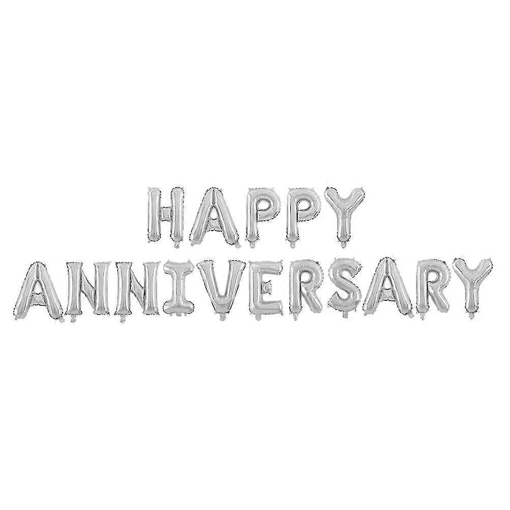 16 Inch Happy Anniversary Letters Balloons Decorative Aluminum Film Balloons Set For Wedding Party (silver)