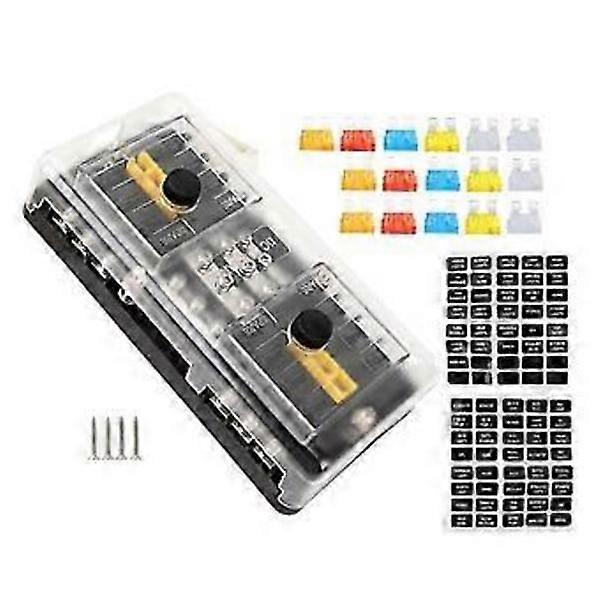16-way blade fuse box, 12-circuit fuse holder with negative busbar
