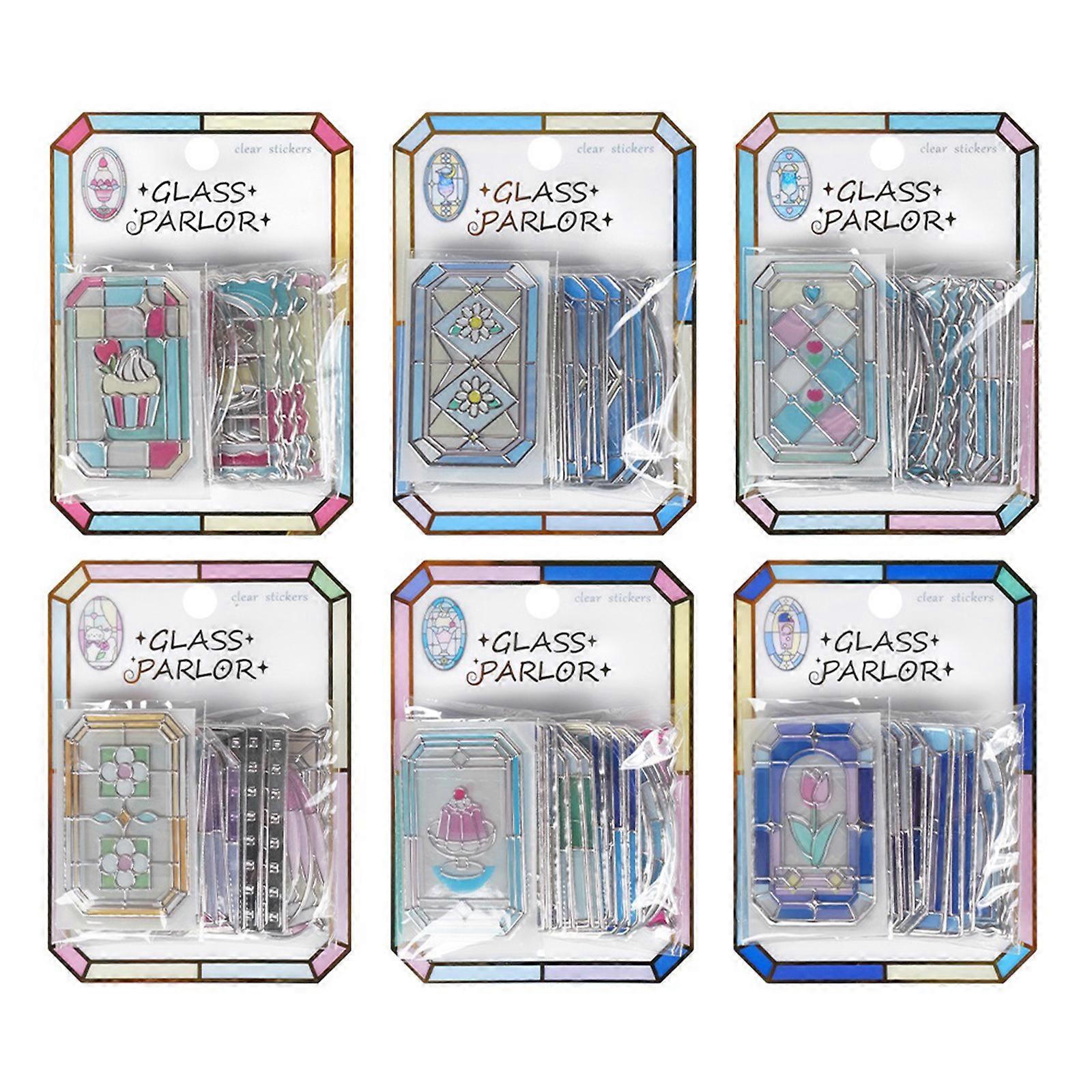 18Pcs Clear Colorful Window Frame PVC Sticker Embossed Decorative Sticker for Notebook Journal Phone Case Bookmarks Multicolor