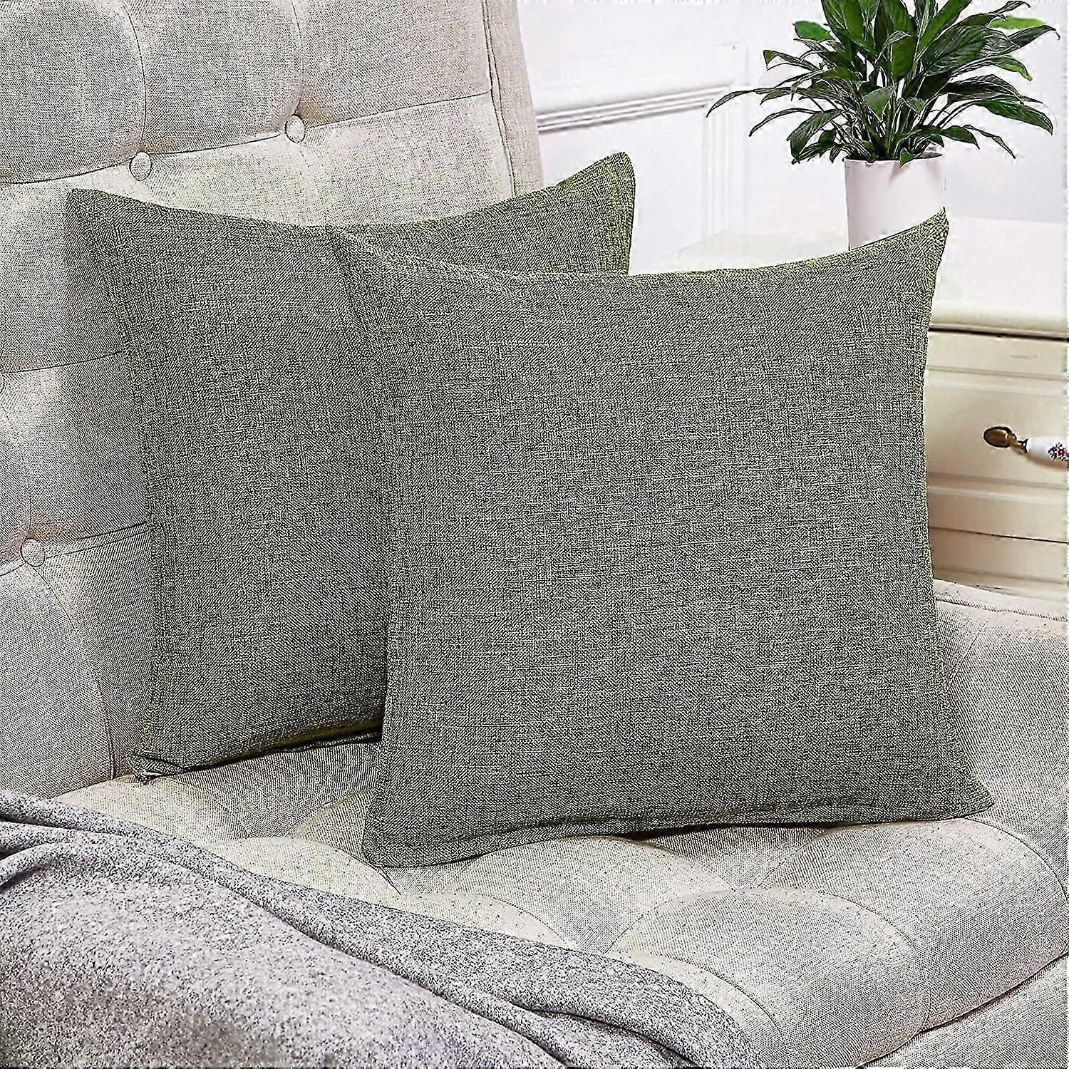 Set of 2 Green Pillow Covers Rustic Linen Decorative Square Throw Pillow Covers 16x16 Inch for Sofa Couch Decoration