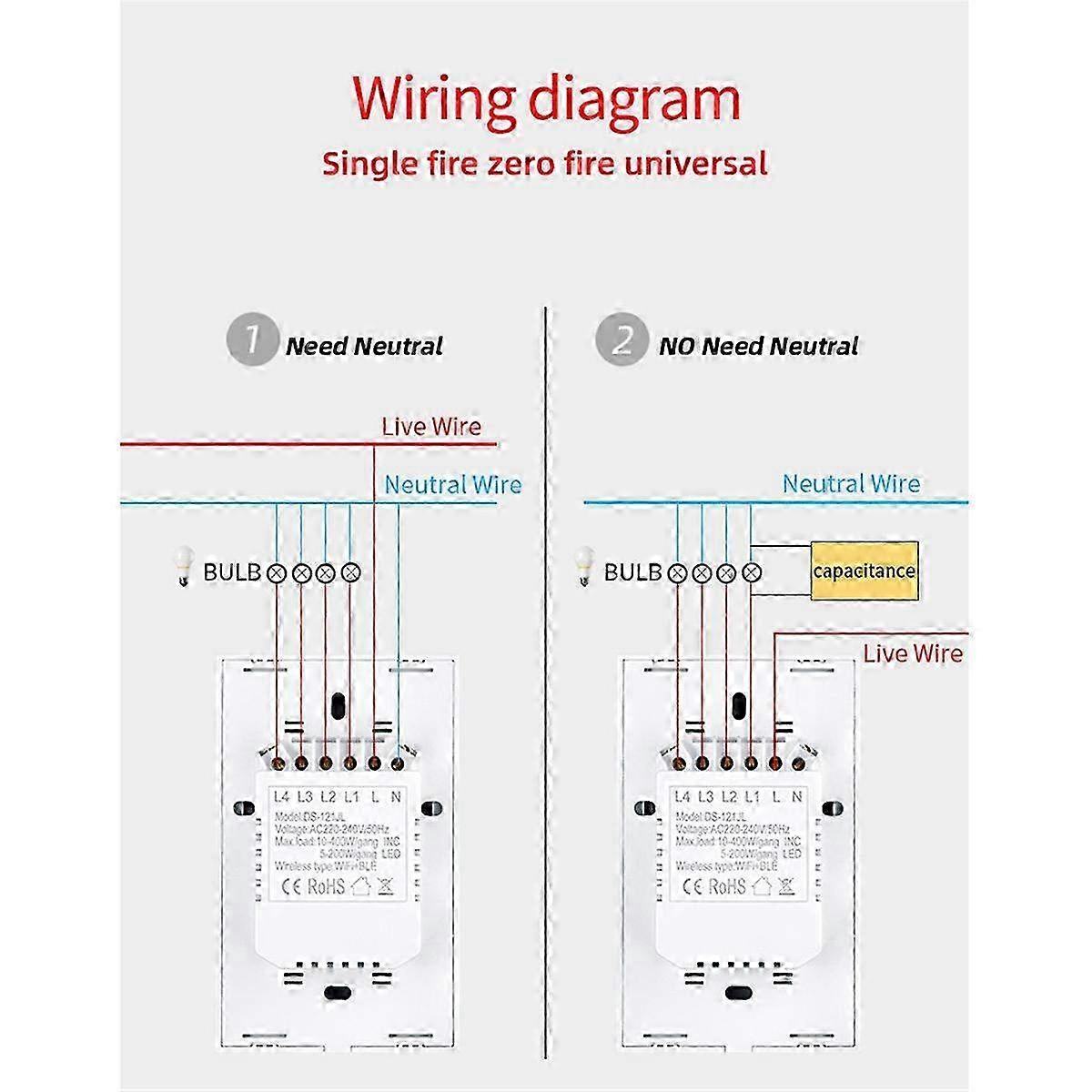 2 Gang WIFI Smart Touch Switch for US Smart Home System - Matter Compatible Smart Light Control Panel