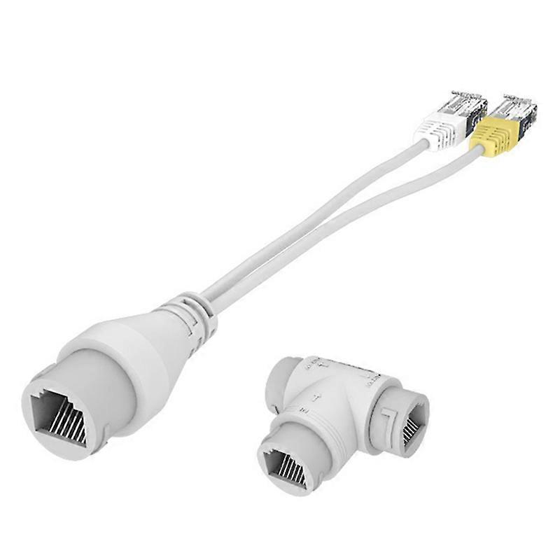 2-In-1 POE Camera Simplified Cable Connector Splitter Cable Connector Three-Way RJ45 Head POE Camera Install Adapter