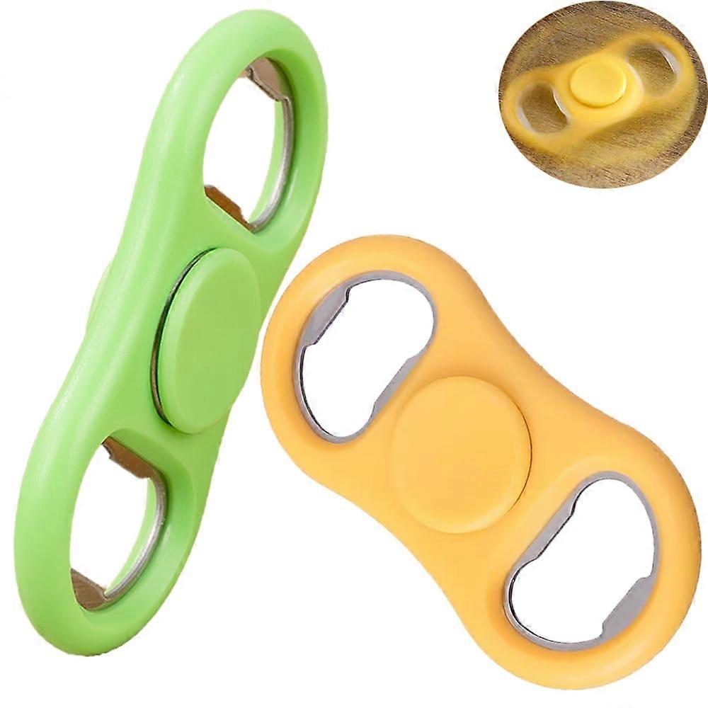 2 Pack Beer Bottle Openers with Rotating Gyroscope, Fun Bar Tools for Father's Day, Yellow and Green