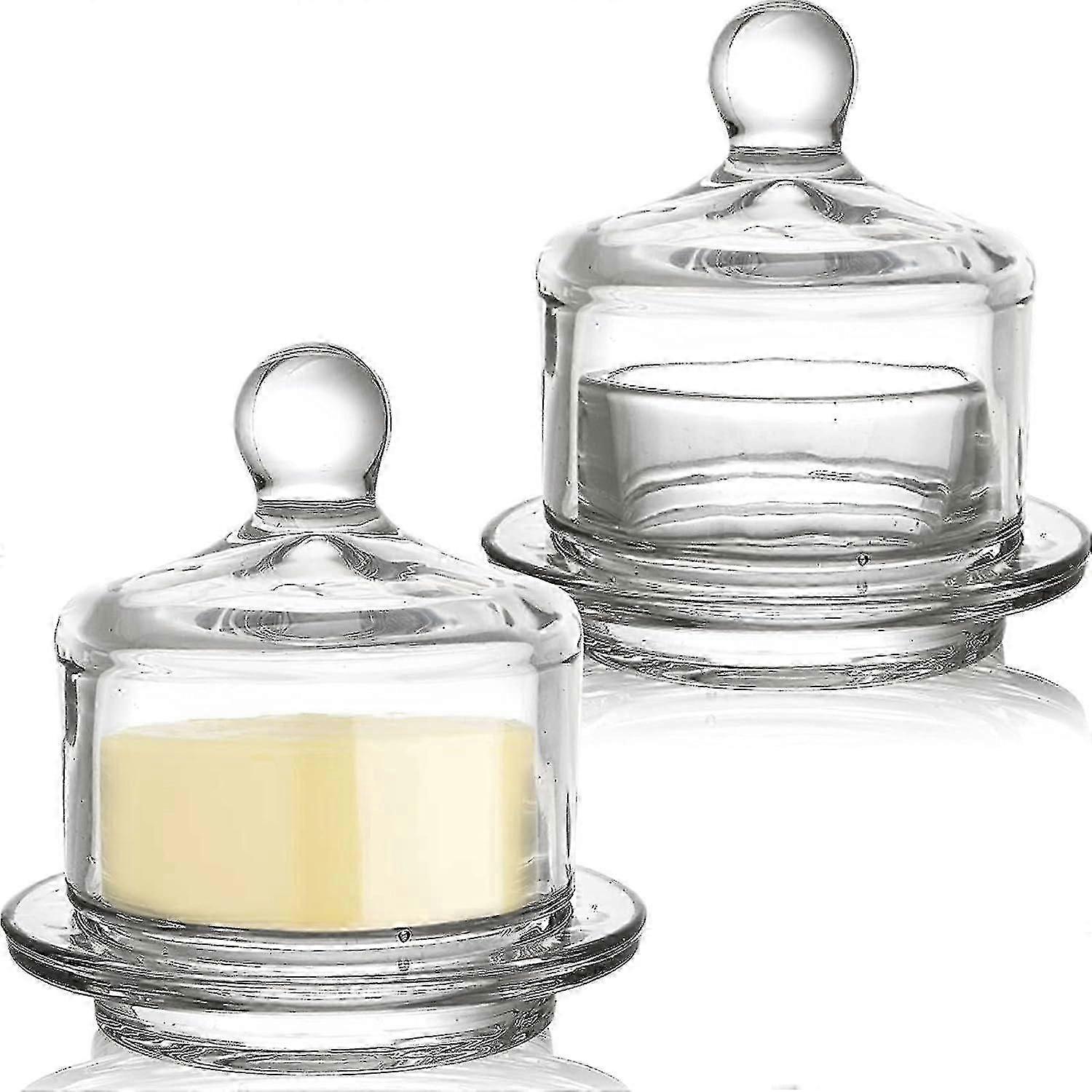 2 Pack Glass Butter Dishes, Small Round Butter Keeper With Dome Lid And Handle, Clear Butter Serving Container With Cover