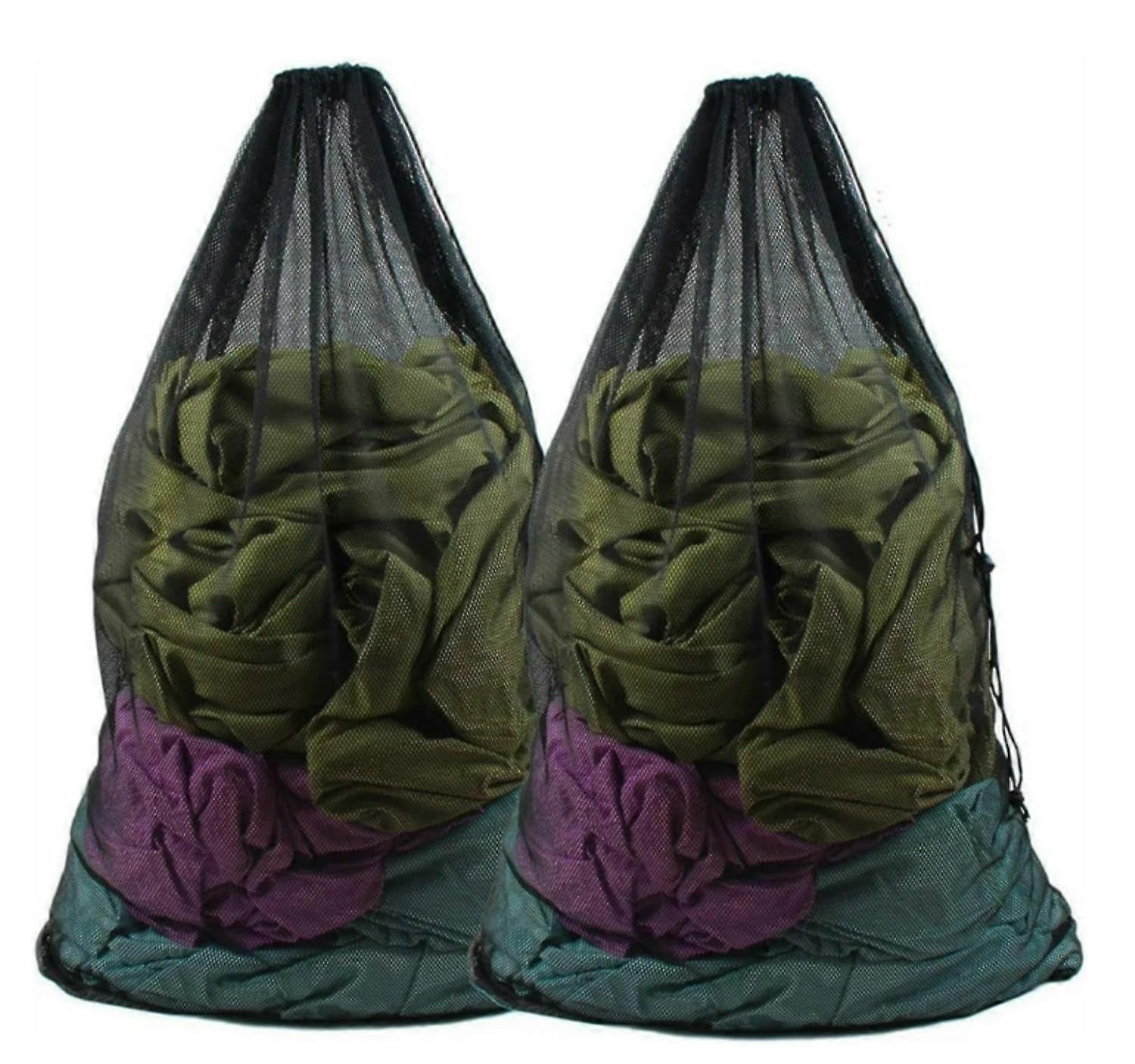 2 Pack Mesh Laundry Bags 24x36 in with Drawstring Closure, Black Foldable Hamper Liners for Travel, Dorms and Home