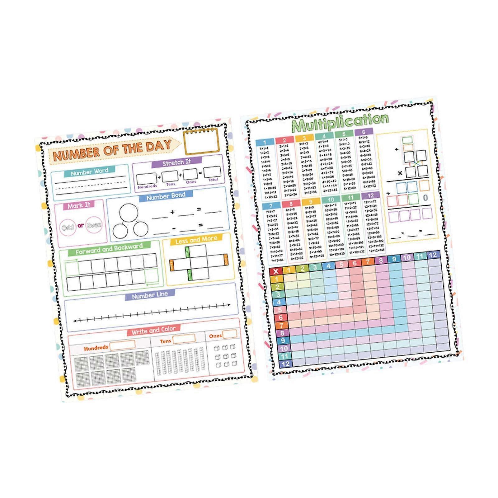 2 Pieces Dry Erase Multiplication Chart Math Manipulatives for Students Kids
