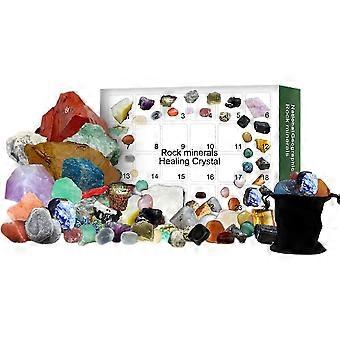 2022 Advent Calendar - 24 Grid Rocks, Minerals & Fossils Healing Crystals Gem Kit 24 Days Christmas Countdown Calendars Gifts For Kids Girls Boys Trea
