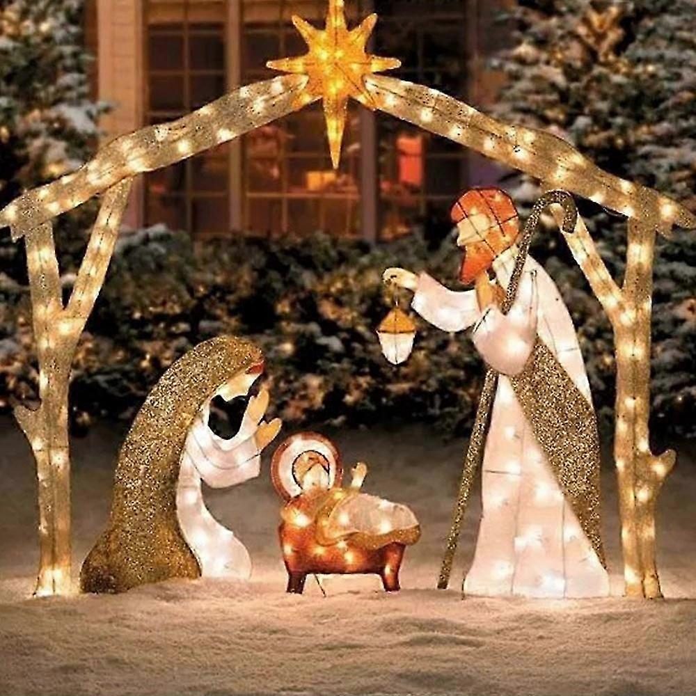 2023 Nativity Scene Light Up LED Christmas Birth of Jesus Silhouette with Stakes Outdoor Garden Yard Lamp Decoration Xmas Ornaments