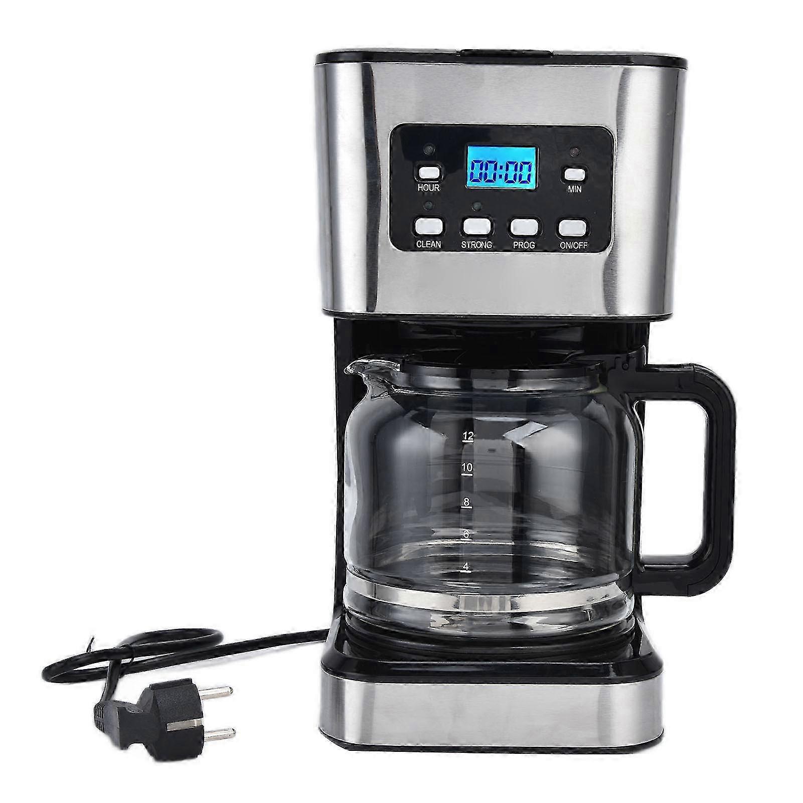 Features: 1Regular and strong two brewing options are available programmable timing you only need to set the brewing time in advance to enjoy coffee 2Large capacity of 1.5L 12 cups of coffee can be made at a time simple operation suitable for family or party. 3The non stick pot tray of the coffee machine can be kept warm for 40 minutes after brewing ensuring the best drinking temperature of coffee 4Automatic shutdown for 2 hours without operation energy saving and safe equipped with indicator light you can know when to clean the drip coffee machine by flashing green light 5The filter is suitable for coffee and tea such as oolong tea black tea it's not only a coffee maker but also a tea maker. Specification: Item Type:Drip Coffee MachineMaterial: ABS GlassWeight: Approx. 2300g / 81.13oz Package List: 1 x Drip Coffee Machine1 x Kettle1 x Manual Note: Due to the light and screen setting difference, the item's color may be slightly different from the pictures. Please allow slight dimension difference due to different manual measurement. Sold by-Minnanxin