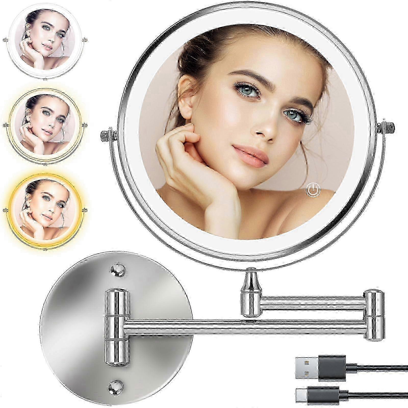2025 8 Inch Rechargeable Makeup Mirror with LED Light for Bathroom and Shaving, Double Sides, 1X/10X Magnifying, Touch Screen Dimmable, 360° Swivel
