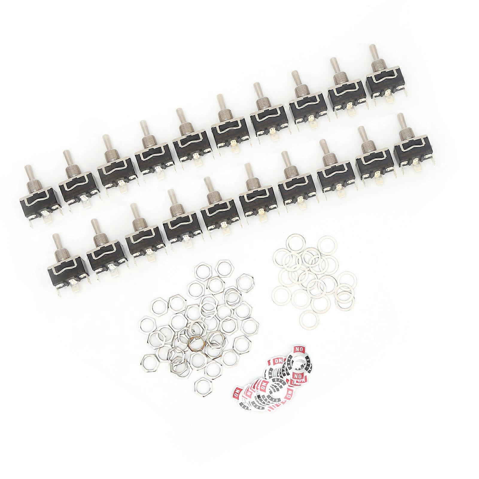 20Pcs BERM Toggle Switch LED Light Rocker Button 3 Level 3 Pins On/Off/On 15A 250VAC Item Type: BERM Toggle SwitchRocker Material: Iron Substrate Material: Polypropylene material Terminal Form: Screw feet Maximum Working Current: 15A Working Humidity: Below 85%Rh Ambient Temperature: -25℃~80℃ Number of Connecting Angles: 3Pin Level: 3-Level Angle Connection Method: Pin How e: Mainly used for on-off control of AC and DC power circuits, but generally can also be used in circuits of several kilohertz or up to 1 MHz, and it can be used when the screw pin is connected to the line.
