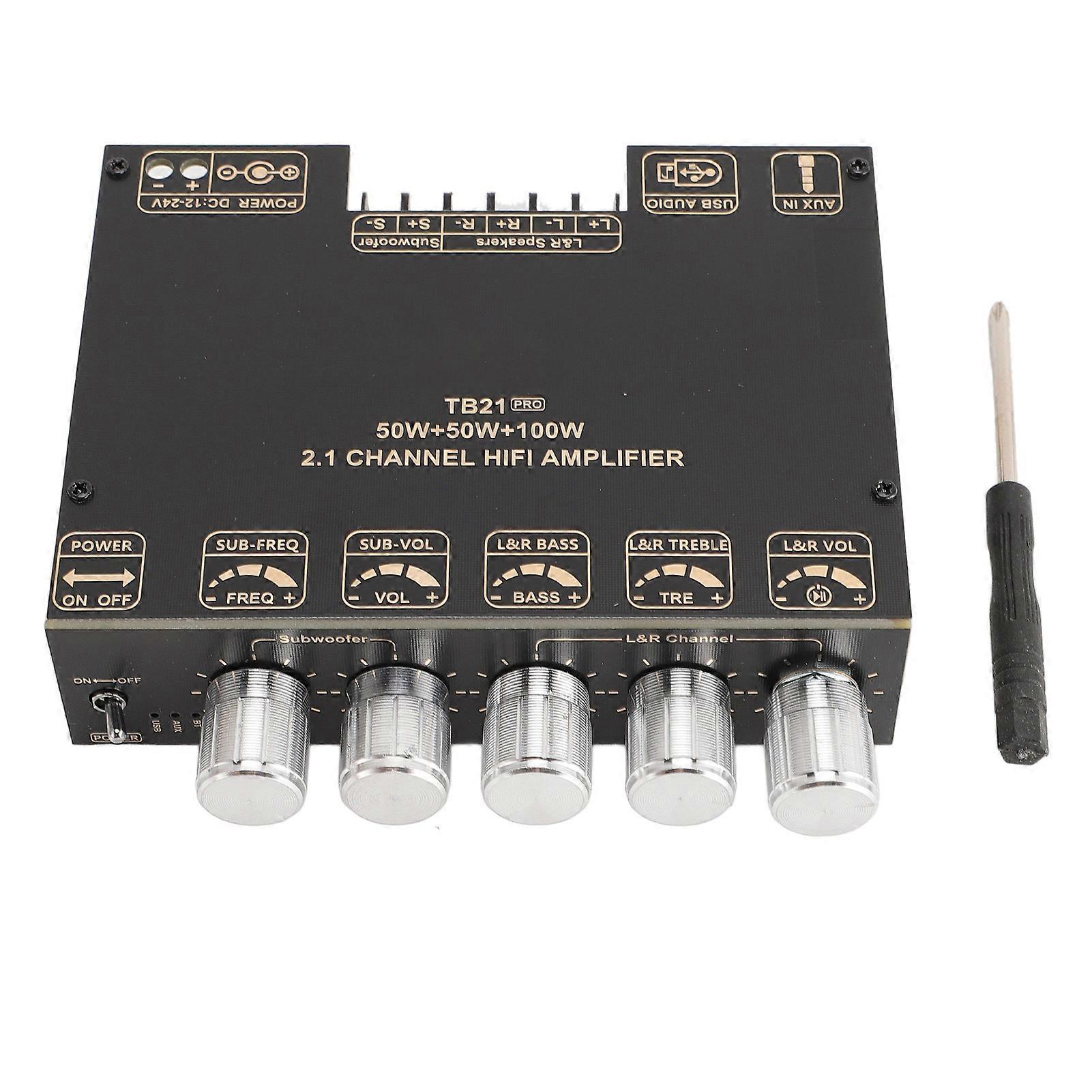 Product Description: 2.1 Channel Bluetooth Power Amplifier Board 50Wx2 Plus 100W Interference Resistant Bluetooth 5.2 AUX USB HiFi Amplifier Module 12‑24V