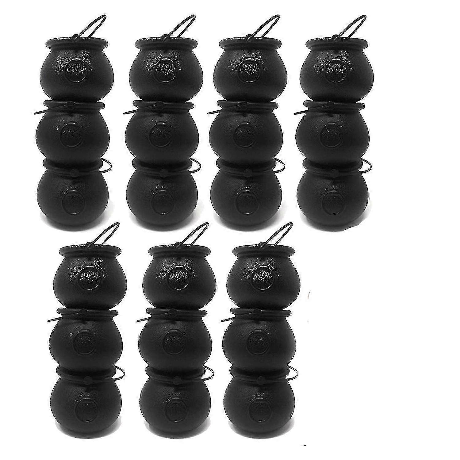 24 Pack Plastic Black Witch Candy Bowls Cauldrons,pot With Handle ,for Halloween, Easter, St Patric