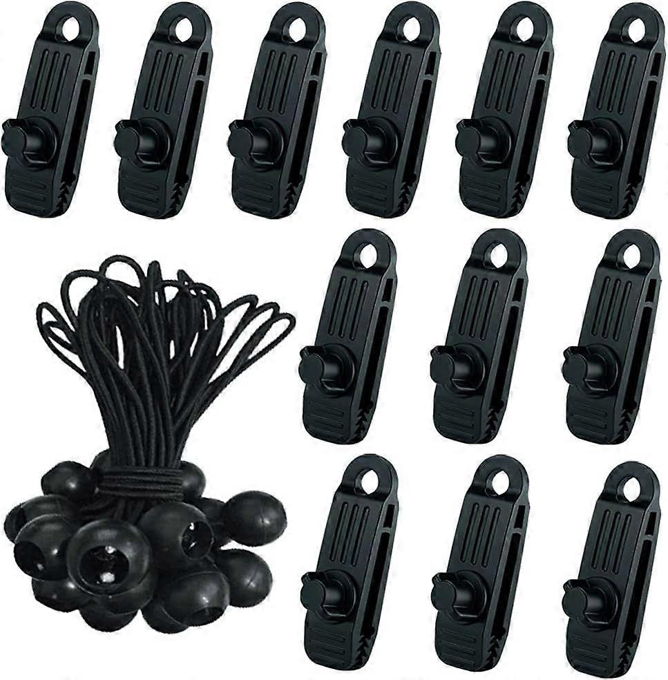 24-Pack Tent Clips with Elastic Ropes for Camping Tarps