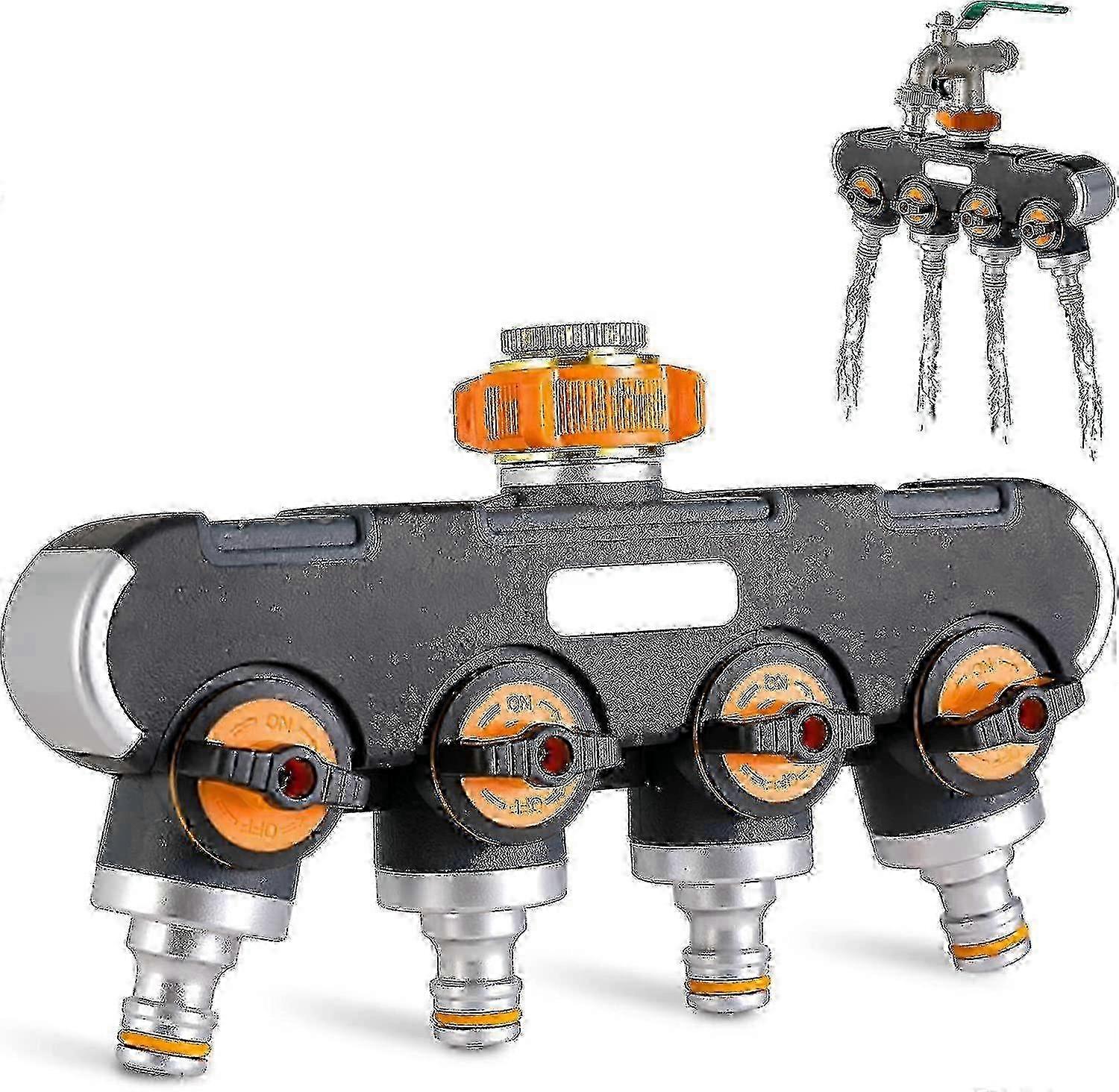 25-26 4-way Water Distributor, 3/4" And 1/2" Water Distributor With Adapter For Garden Hose Faucet And Water Timer, Water Flow Adjustable And Lockable