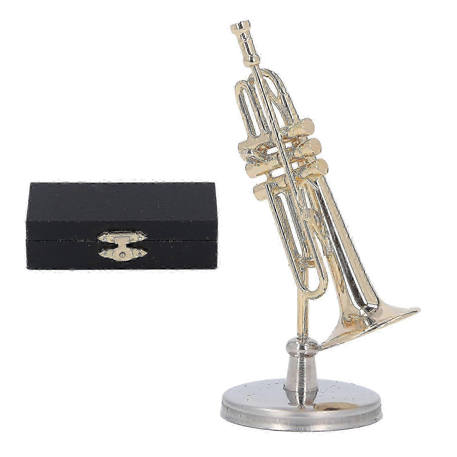 25-26 Miniature Durable Brass Exquisite Design Romantic Vibes Mini Trumpet Model with Stand Case for Desk Bookshelf