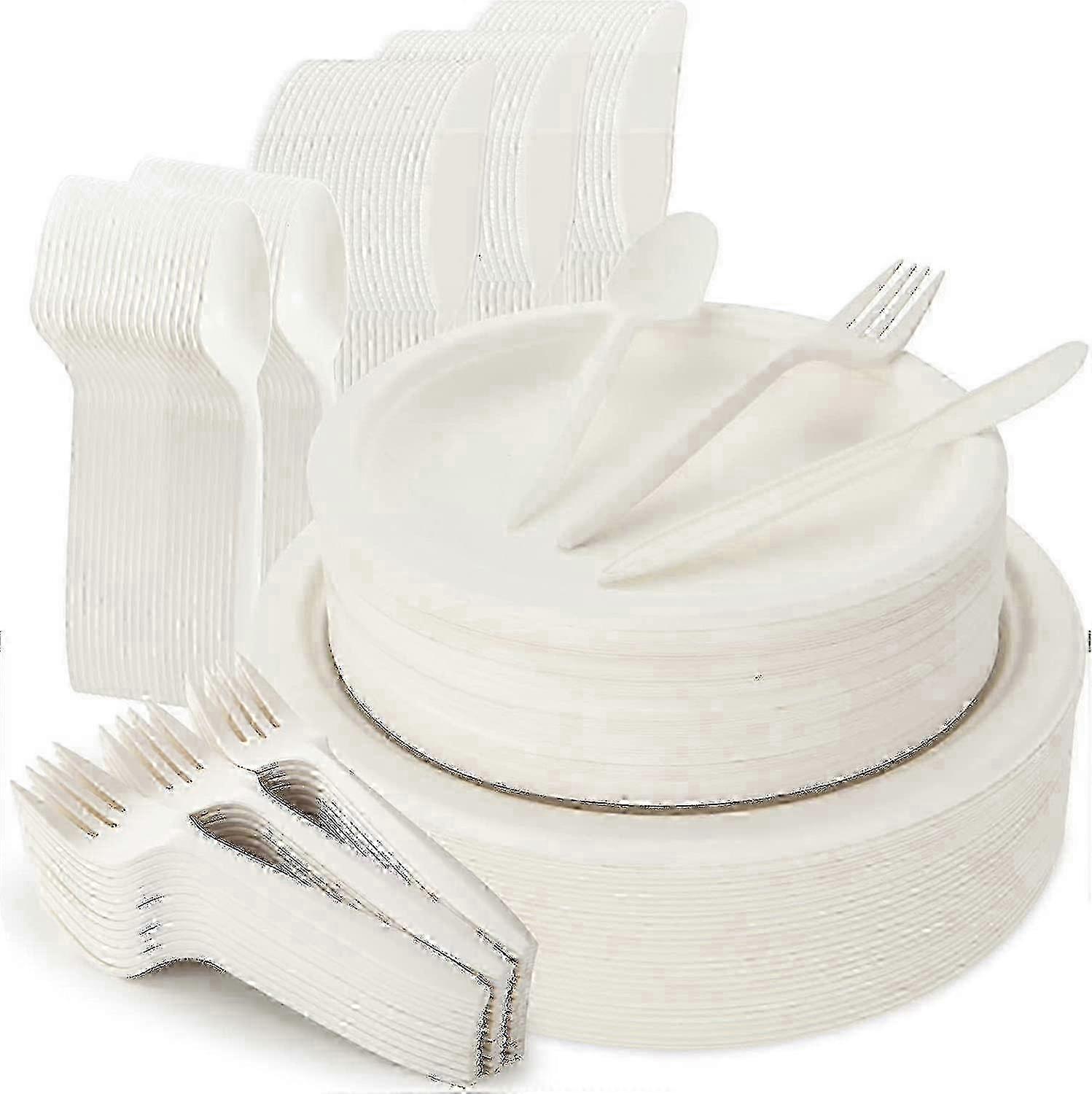 250pcs Disposable Plates And Cutlery Set, Compostable Bagasse Tableware Kit Includes 7 Inch & 9 Inch Paper Plates, Compatibleks, Knives And Spoons Com