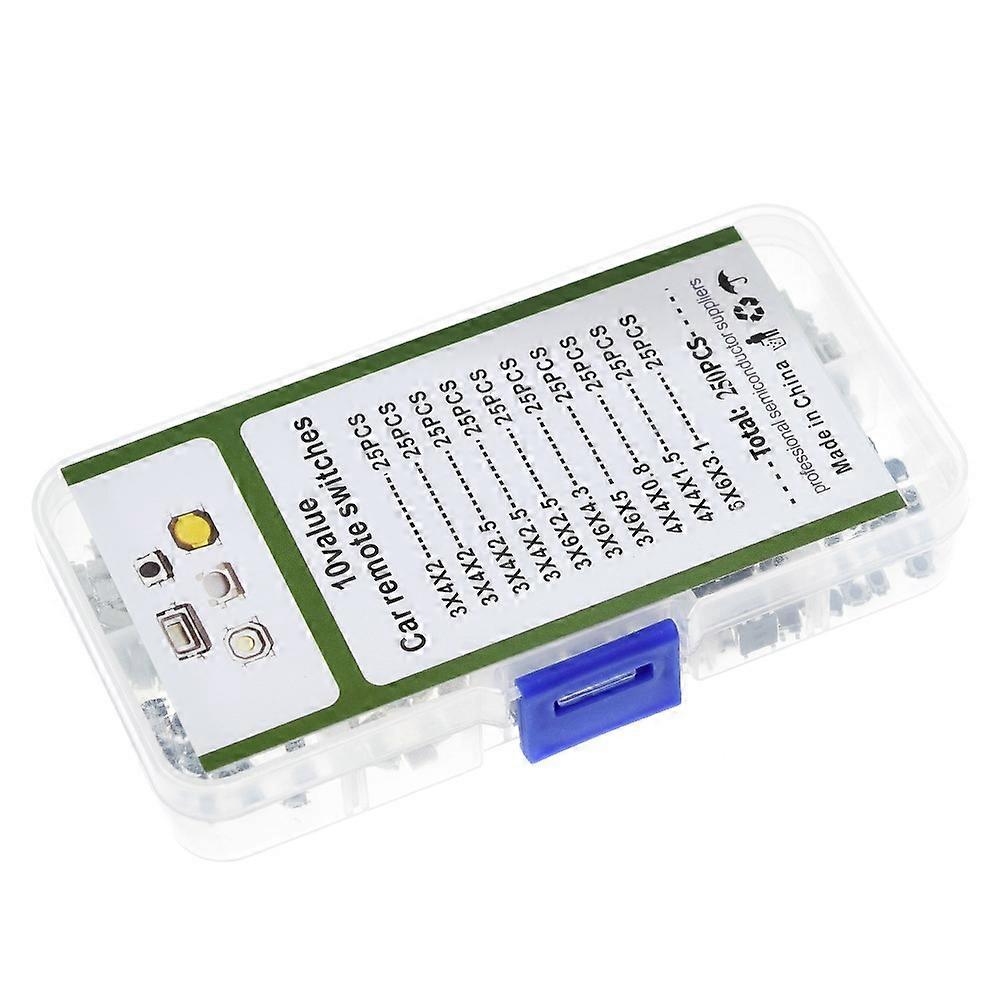 250Pcs 10-Types Tactile Push Button Switch Car Remote Control Keys Button Touch Microswitch