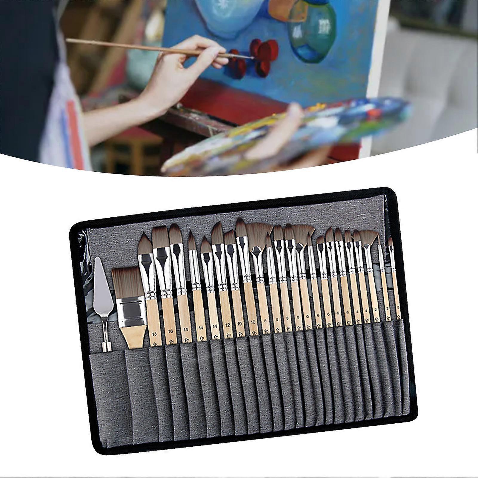 25PCS Paint Brush Set Wooden Handle Flat Angular Fan Nylon Brushes