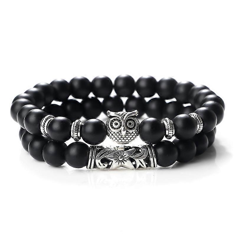 2pcs Beads Bracelet Men 8mm Natural Tiger Eye Lava Stone Owl Charm Stretch Couple Bracelets & Bangles Women Lucky Energy Jewelry
