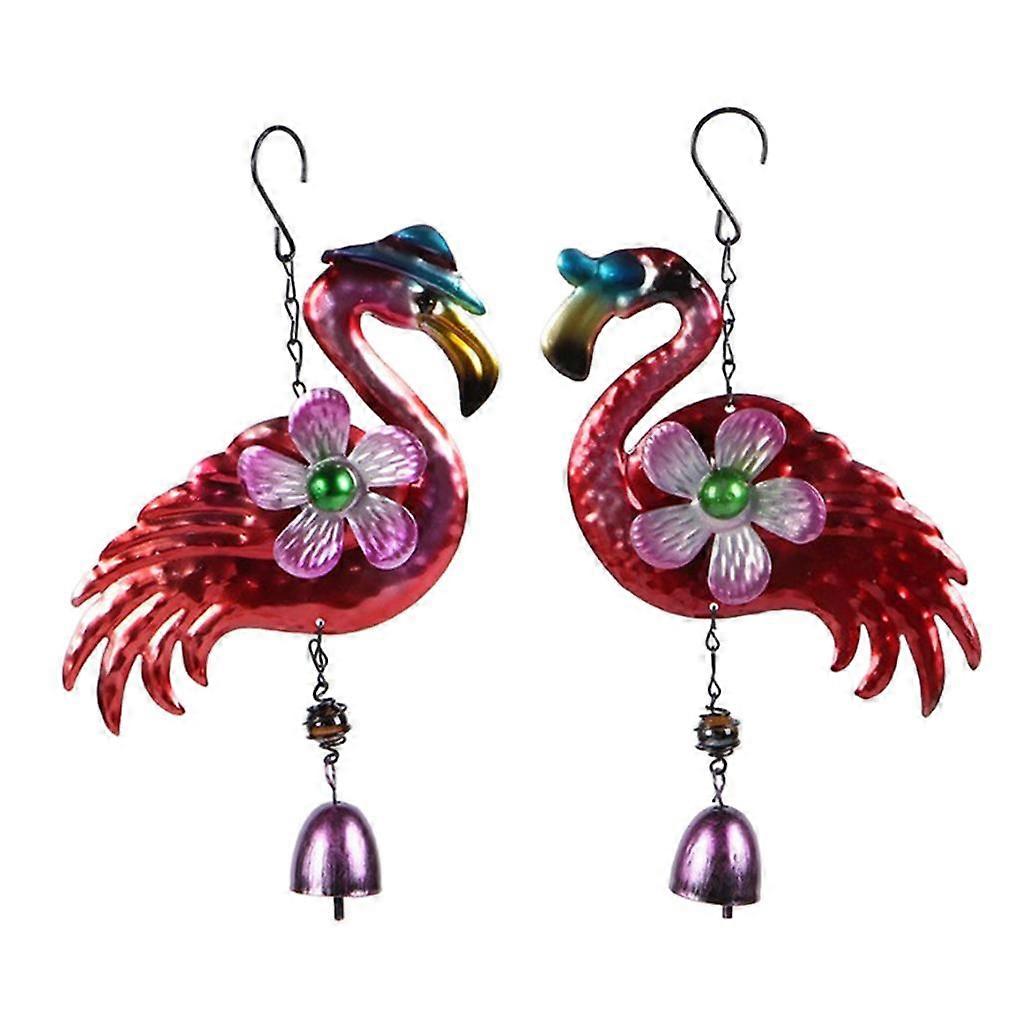 2pcs Nordic Style Iron Wind Chimes Metal Flamingo Pattern Wind Spinner
