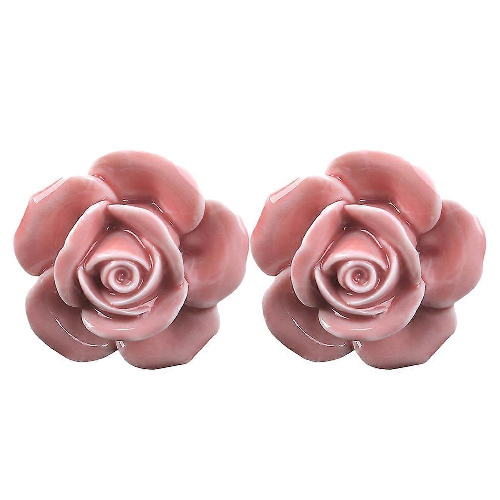 2pcs Rose Shaped Ceramic Kitchen Cupboard Cabinet Drawer Door Knobs Pull Handles (Pink)