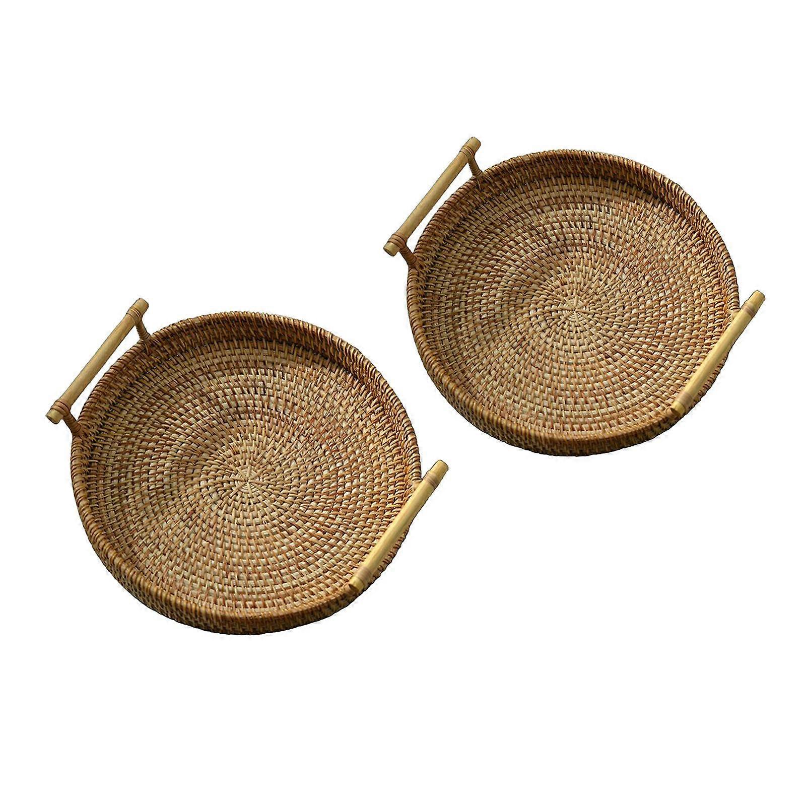 2x Round -Woven Bread Storage Tray with les Tea Snack Display