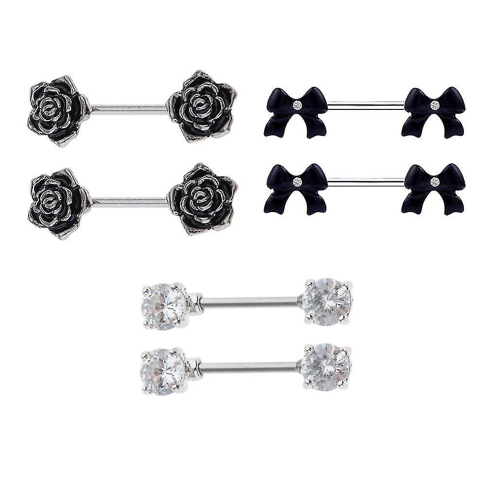 3 Pairs Vintage Stainless Steel Nipple Ring Barbell Shield Rings