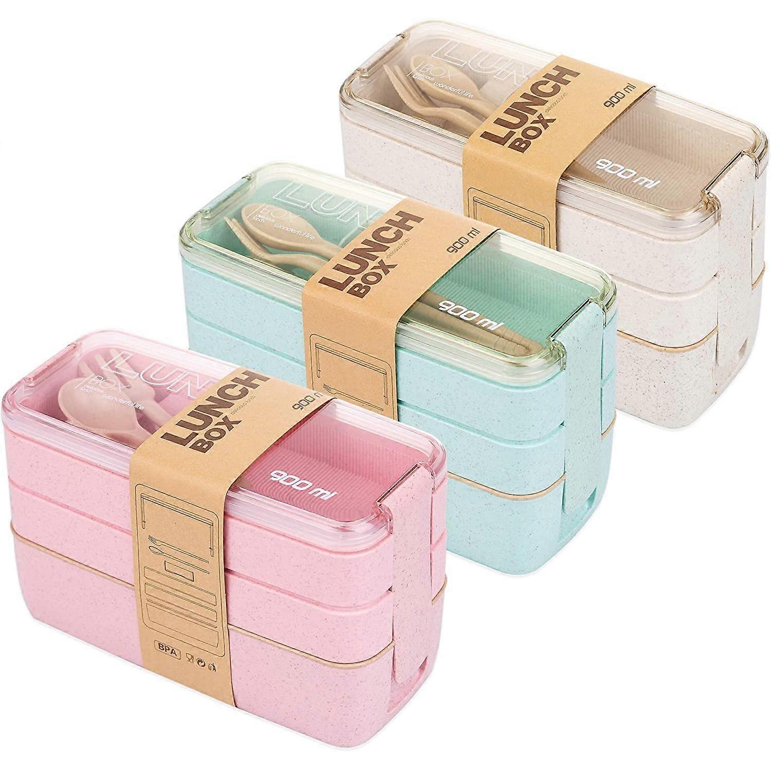 3-In-1 Stackable Lunch Bento Box with Spoon and Fork