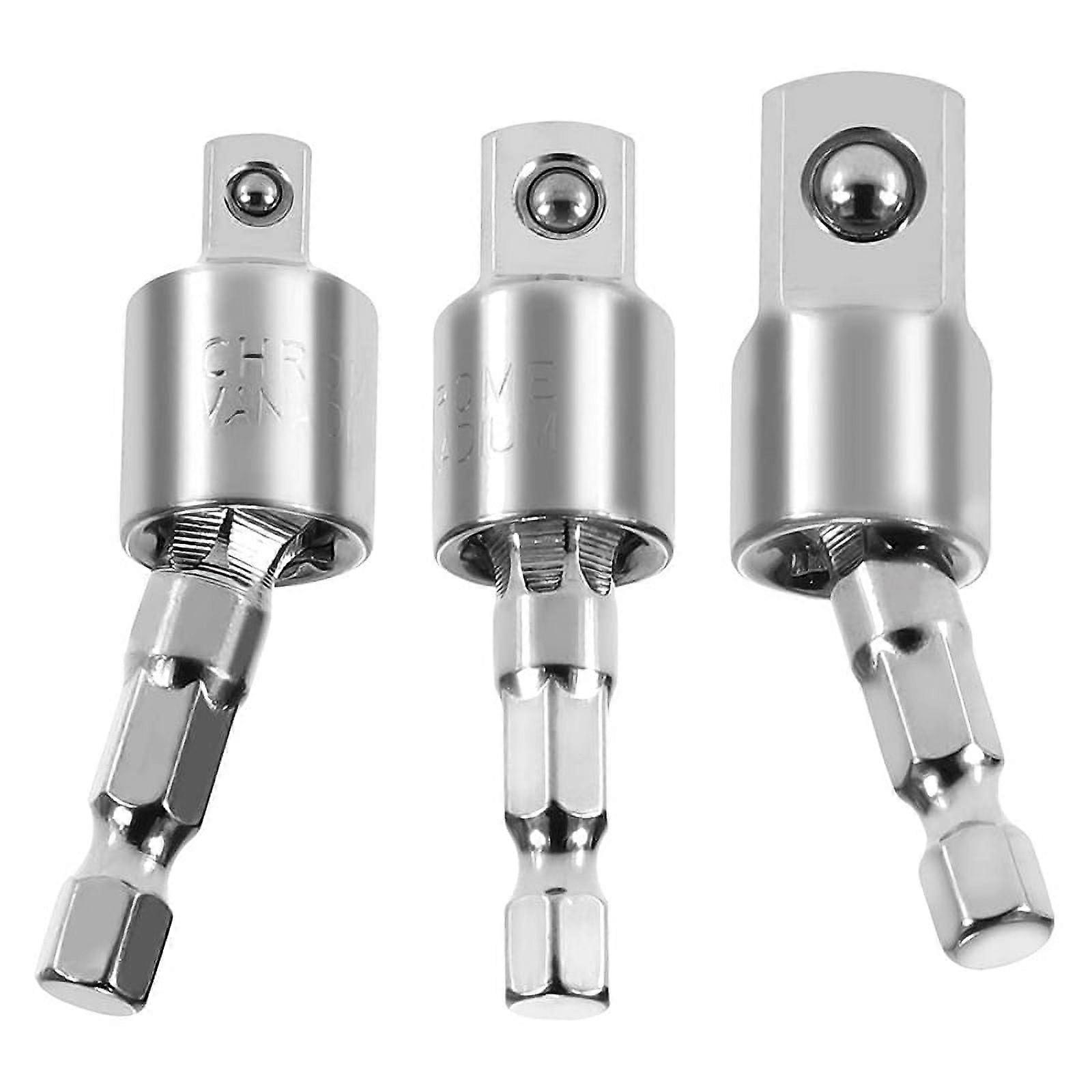 3 Pack Impact Grade 360-Degree Universal Joint Swivel Socket Set, Socket to Drill Adapter
