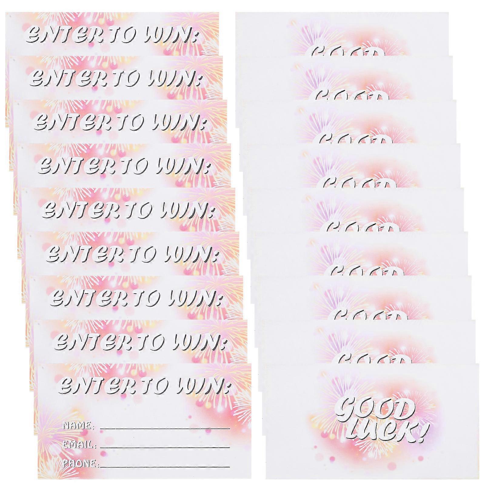 Ensure a well-organized event with our raffle ticket booklets. Each booklet contains six packs of blank entry forms, suitable for any raffle. Participants can easily provide their information, and you can collect and draw the winners without any hassle. Features -Color:Multi -Material:Paper -Size:9.00X5.00X0.10cm/3.54X1.97X0.04in -Effortless participation: our raffle tickets are designed to make the process of entering contests and raffles easy and enjoyable -Comprehensive : each ticket collects essential information like name, email address, and phone number, ensuring easy communication with winners -Encouraging message: the "good luck" message printed on each ticket adds a positive and touch to your event -Material: made from card paper, these tickets offer a smooth writing surface and are built to last -Wide applicability: suitable for small businesses, school events, carnivals, raffles, salons, restaurants, and clubs, making them a versatile choice for any occasion Package list: 300 x raffle ticket cards