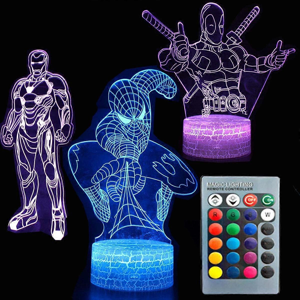 3D Night Light Touch Table Desk Lamp Super Hero Three Pattern 7 Colors Optical Illusion Lights