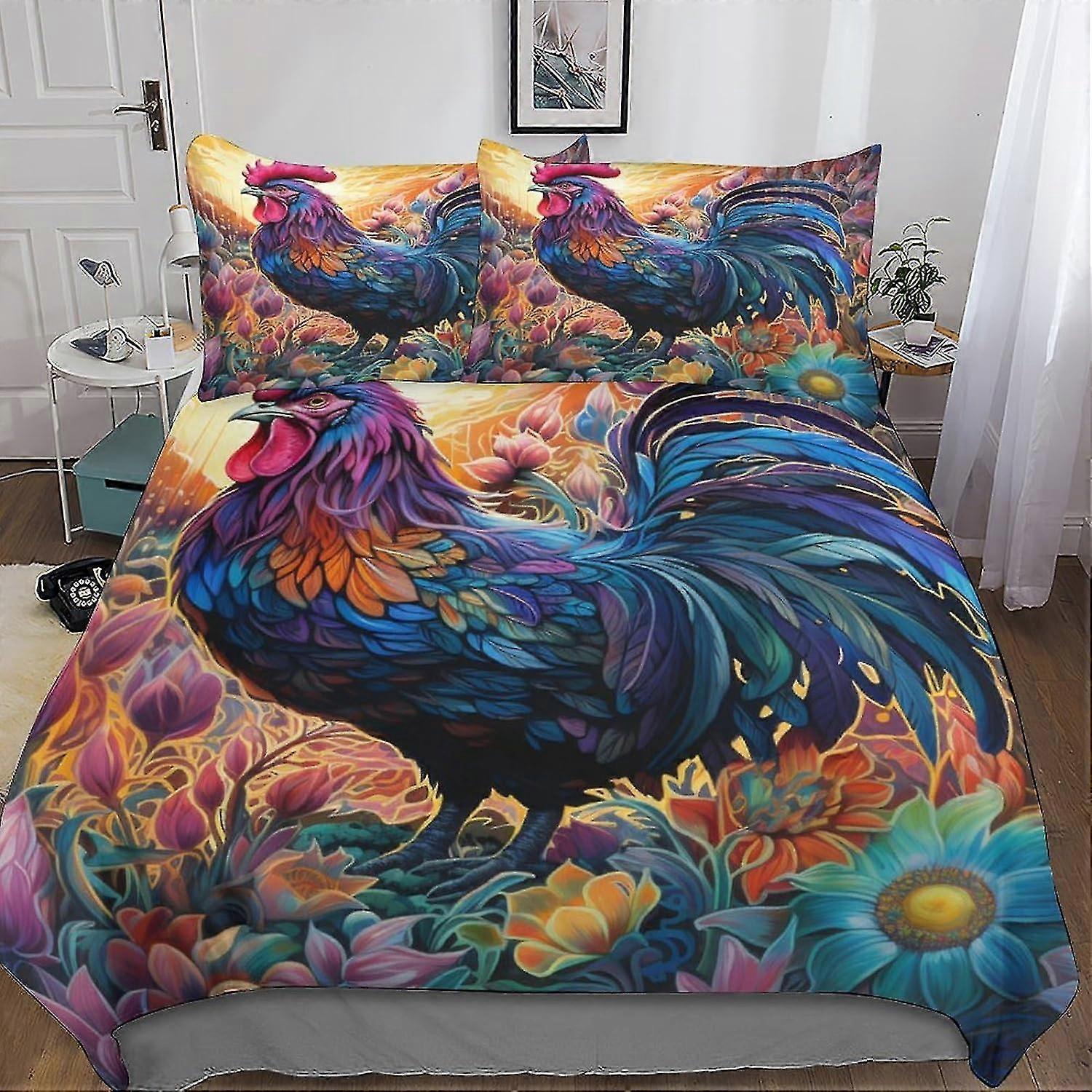 3D Print Rooster Duvet Cover Set with Hidden Zipper Closure, Microfiber Polyester Animal Print Comforter for Teens