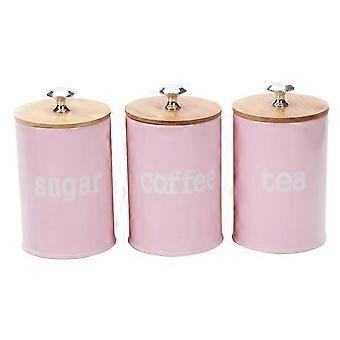 3Pcs 식품 저장 항아리 핑크 식품 저장 캔 밀폐 밀봉 대나무 뚜껑 - 차 커피 향신료 제공을 위한 현대적인 디자인 주방 저장 용기